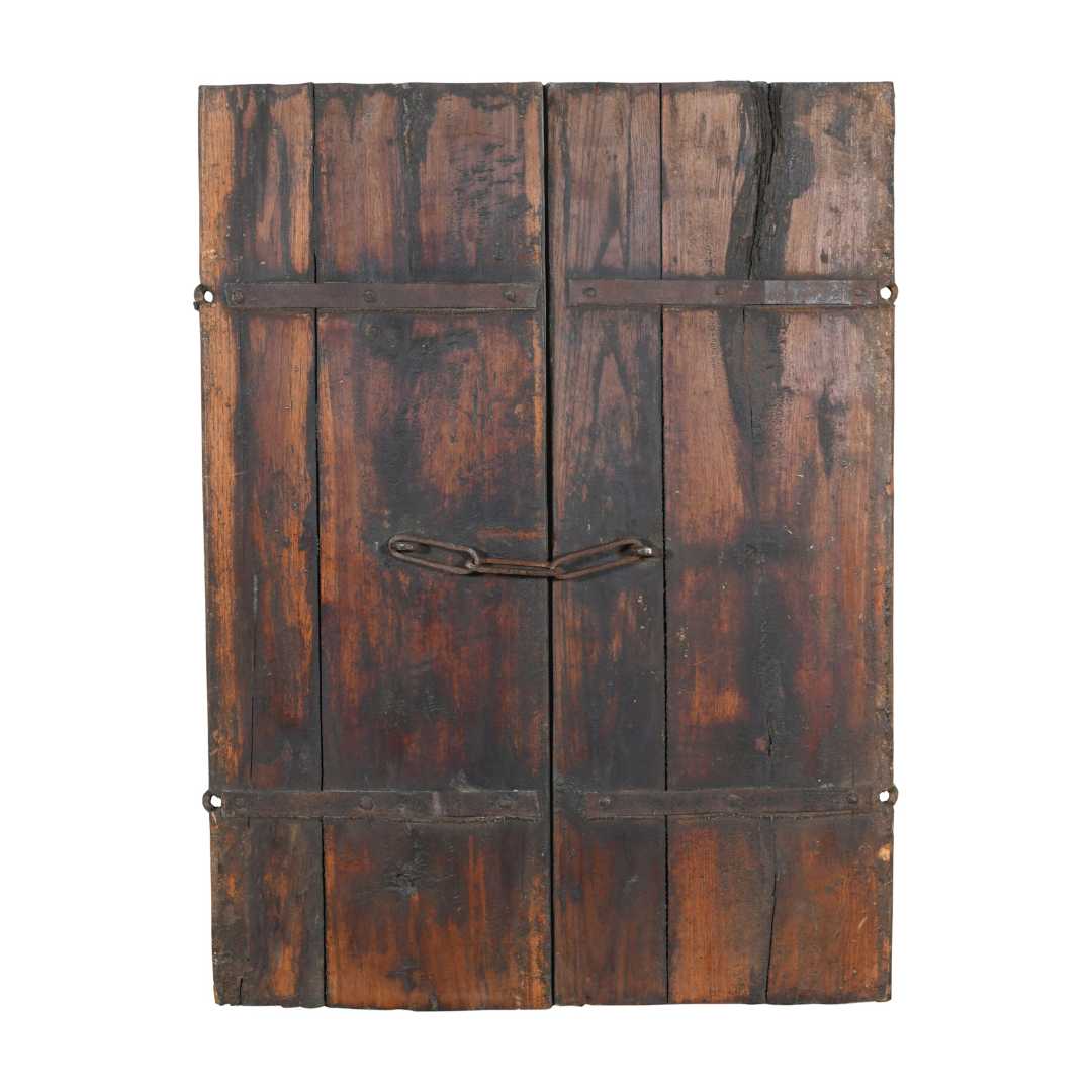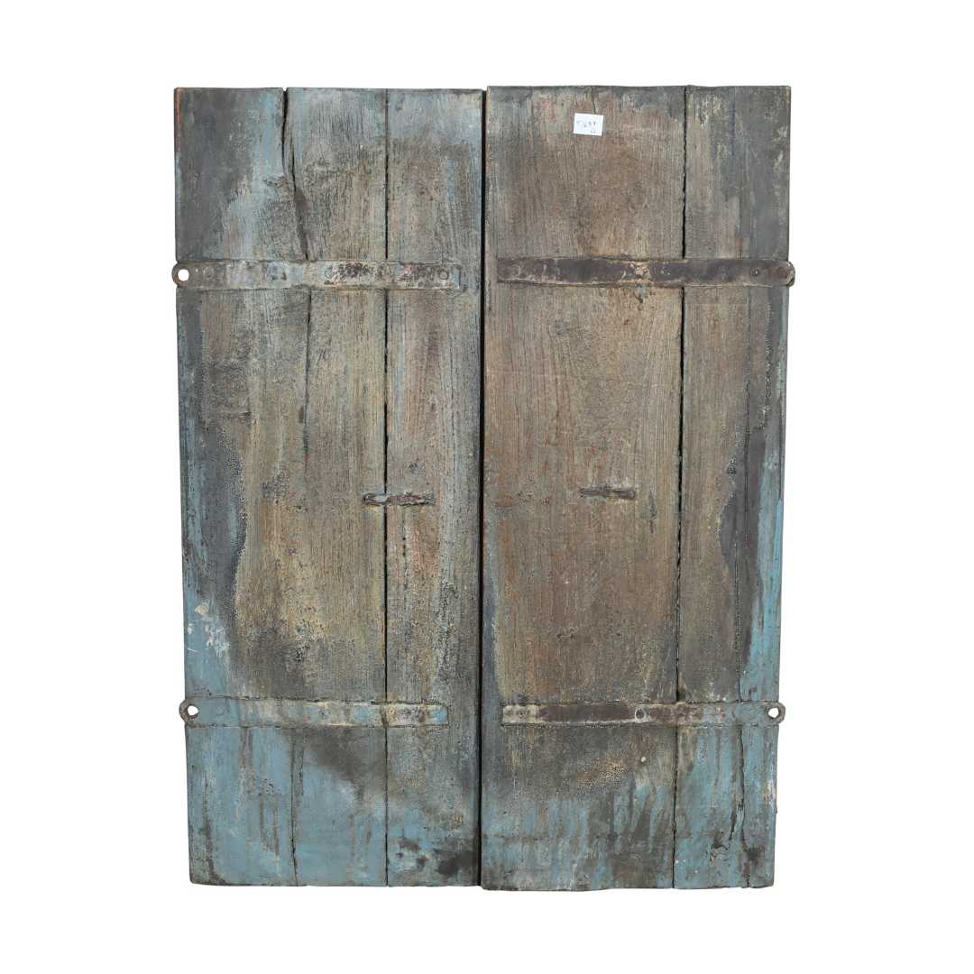 Distinctive blue-grey and rustic brown weathered teak wood with original iron fittings