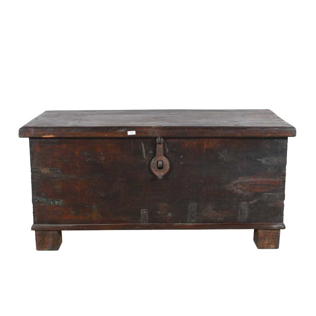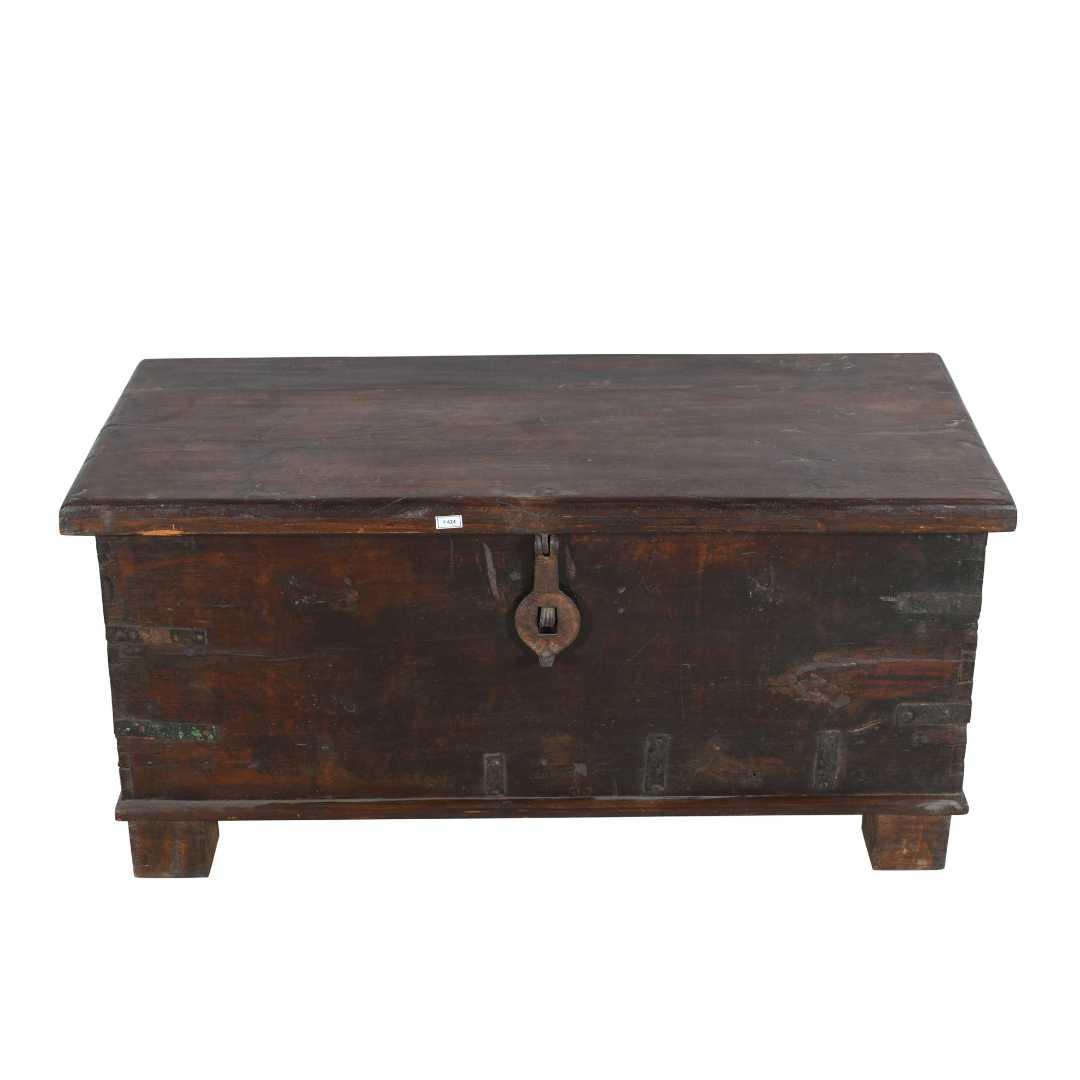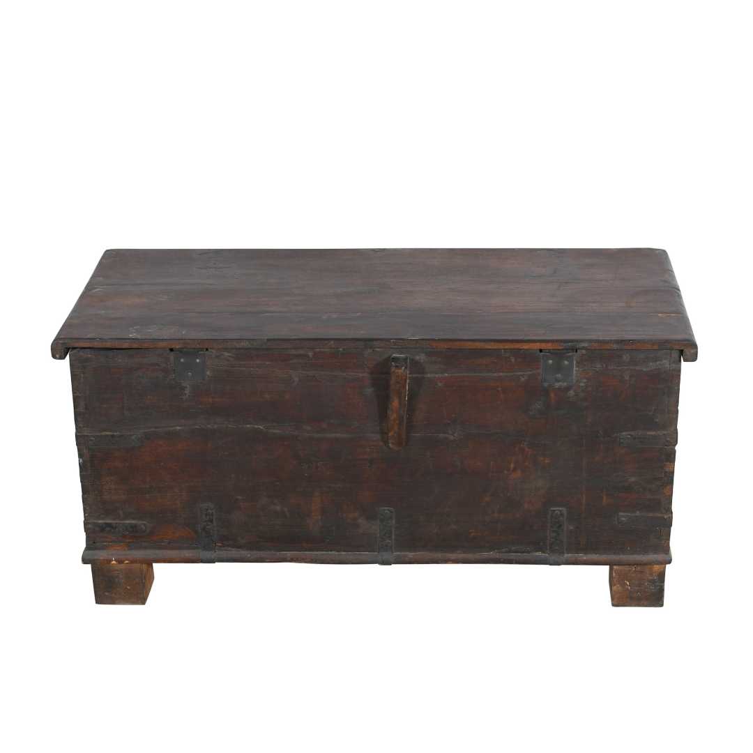 Antique Dark Walnut Teak Dowry Treasure Chest Coffee Side Table – Gujarat c1800s