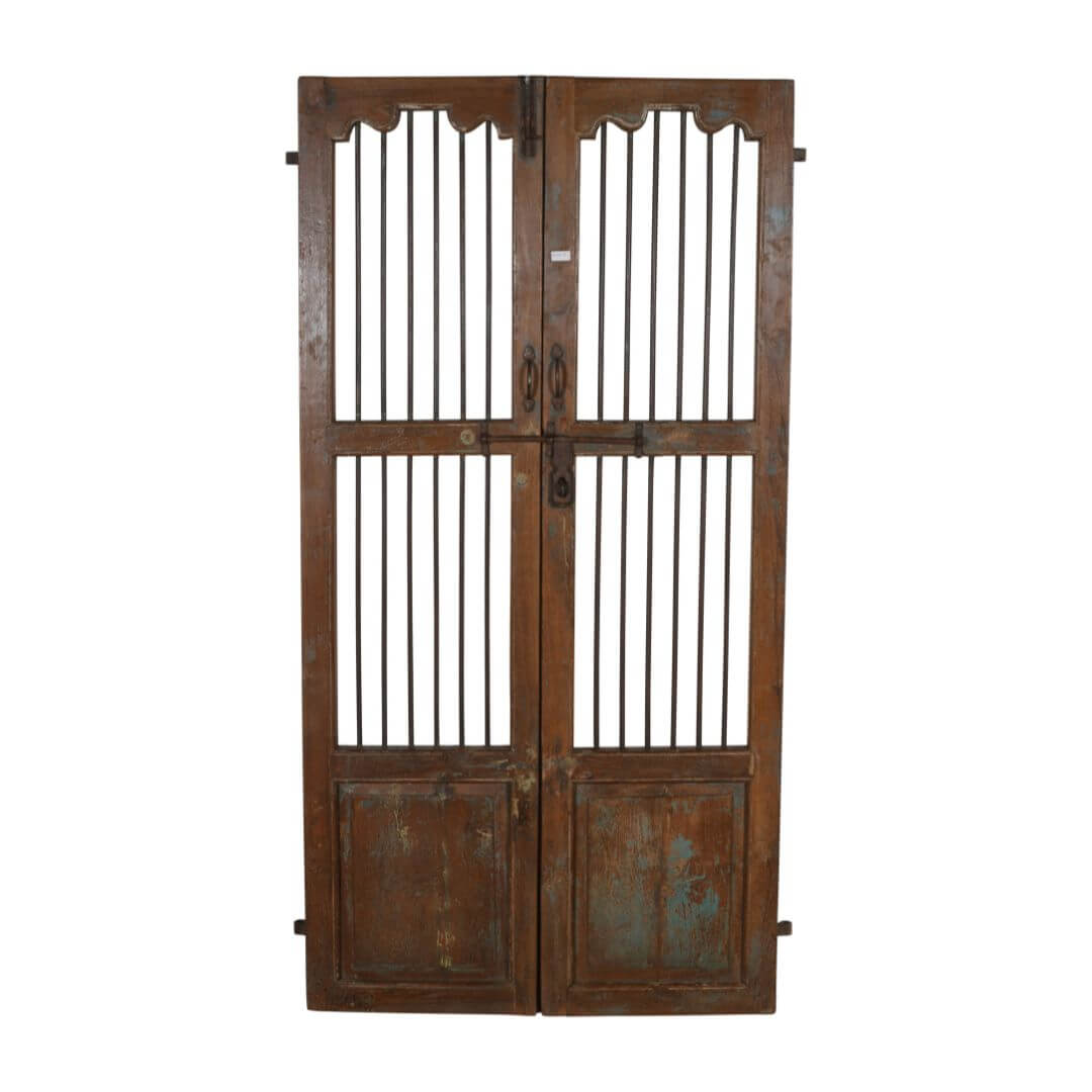 Antique Indian Teak Wood and Iron Jali Doors (163cm x 108cm) | c.1880-1900