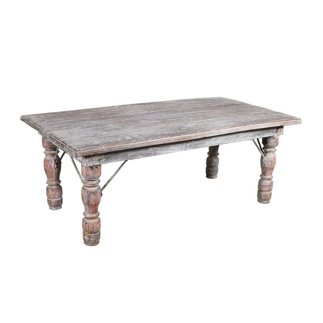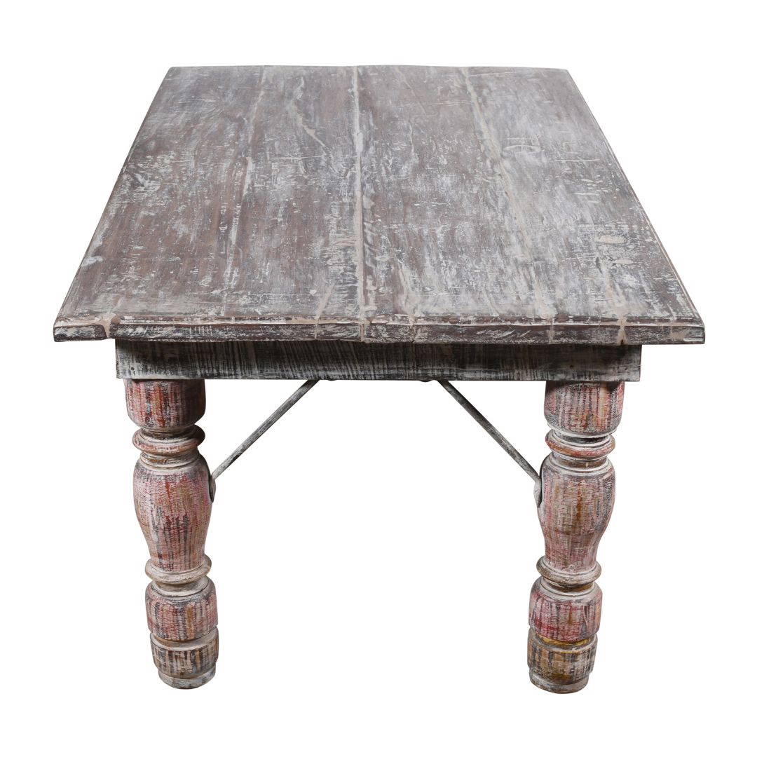 Made from solid teak wood, it showcases the rich history of Indian craftsmanship. This versatile table would be a stunning and functional addition to any kitchen, office, or dining room. Retaining its original paint and iron fittings, it exudes rustic charm and character.