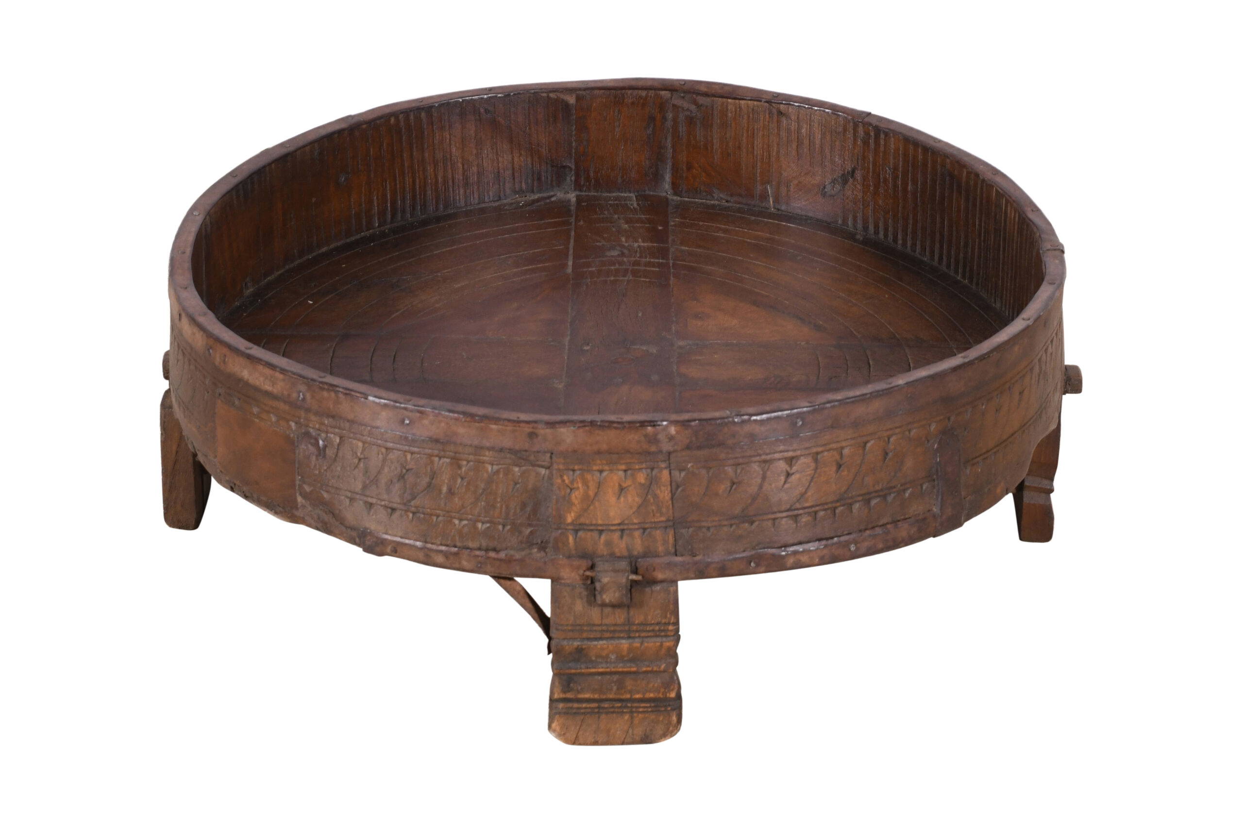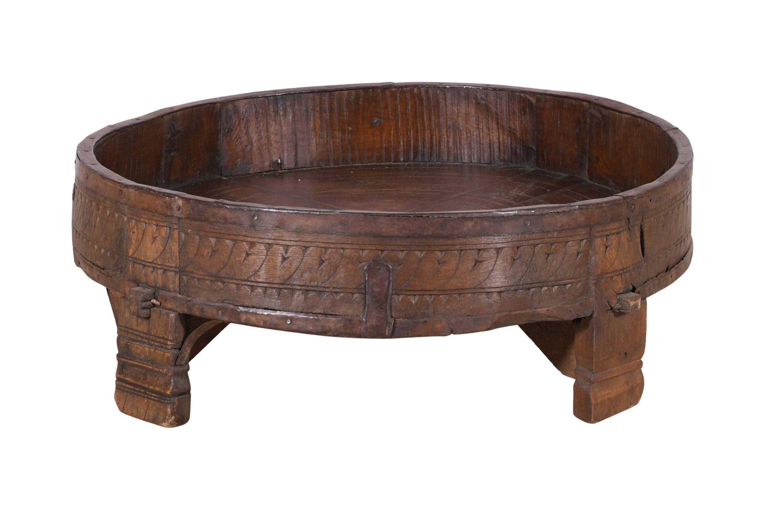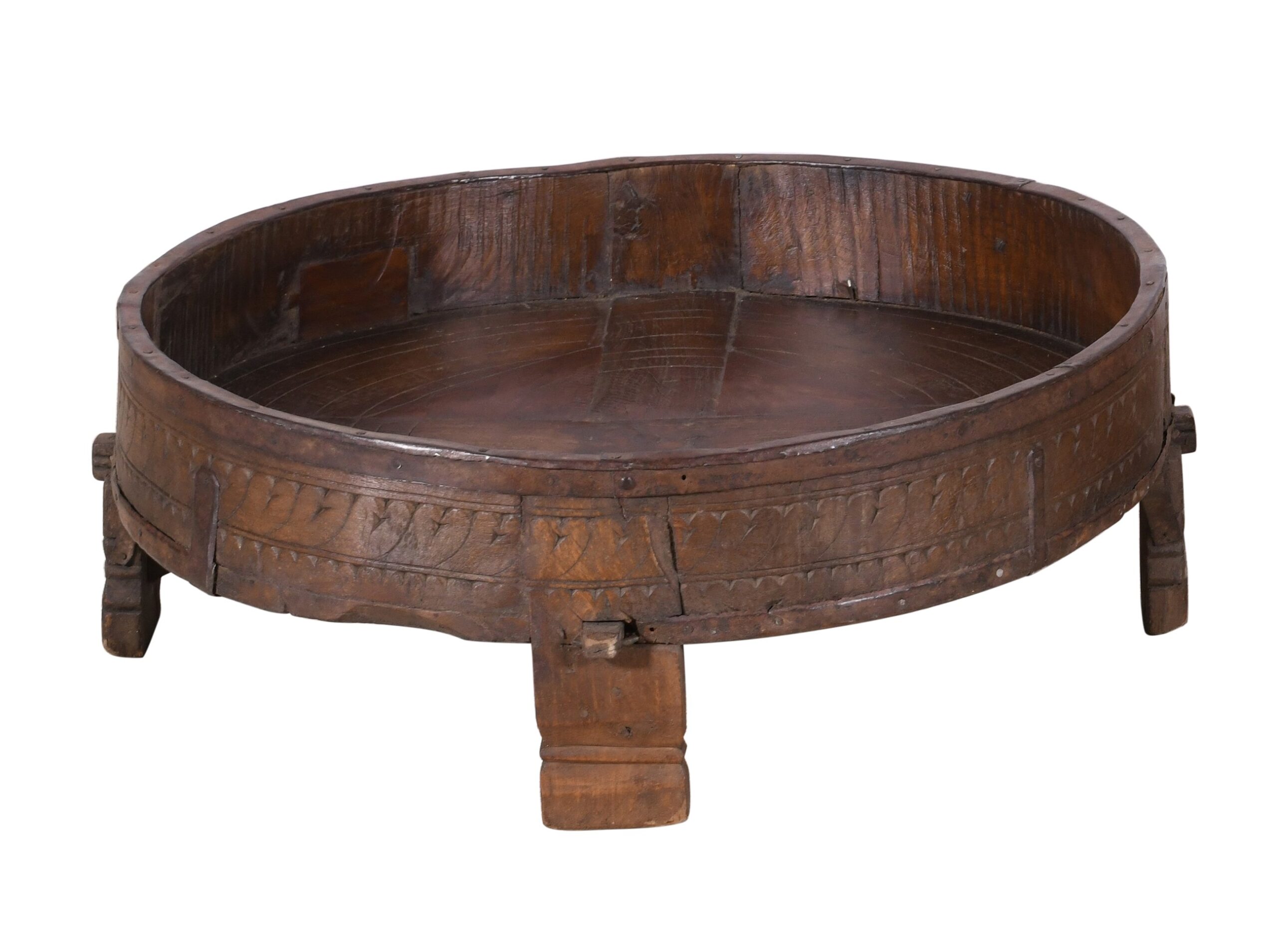Antique Indian Teak Wood Chakki Grinder Coffee Table
