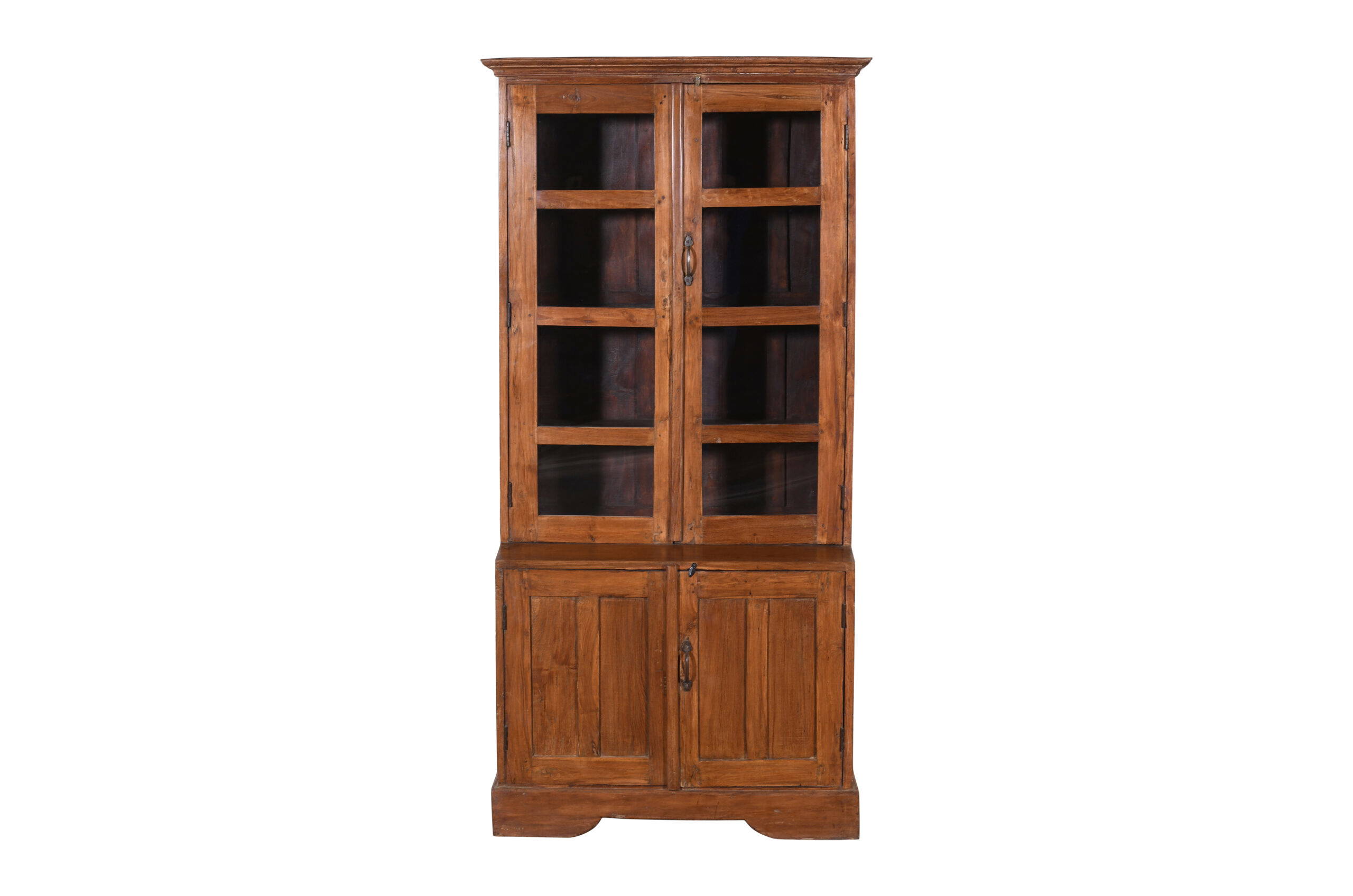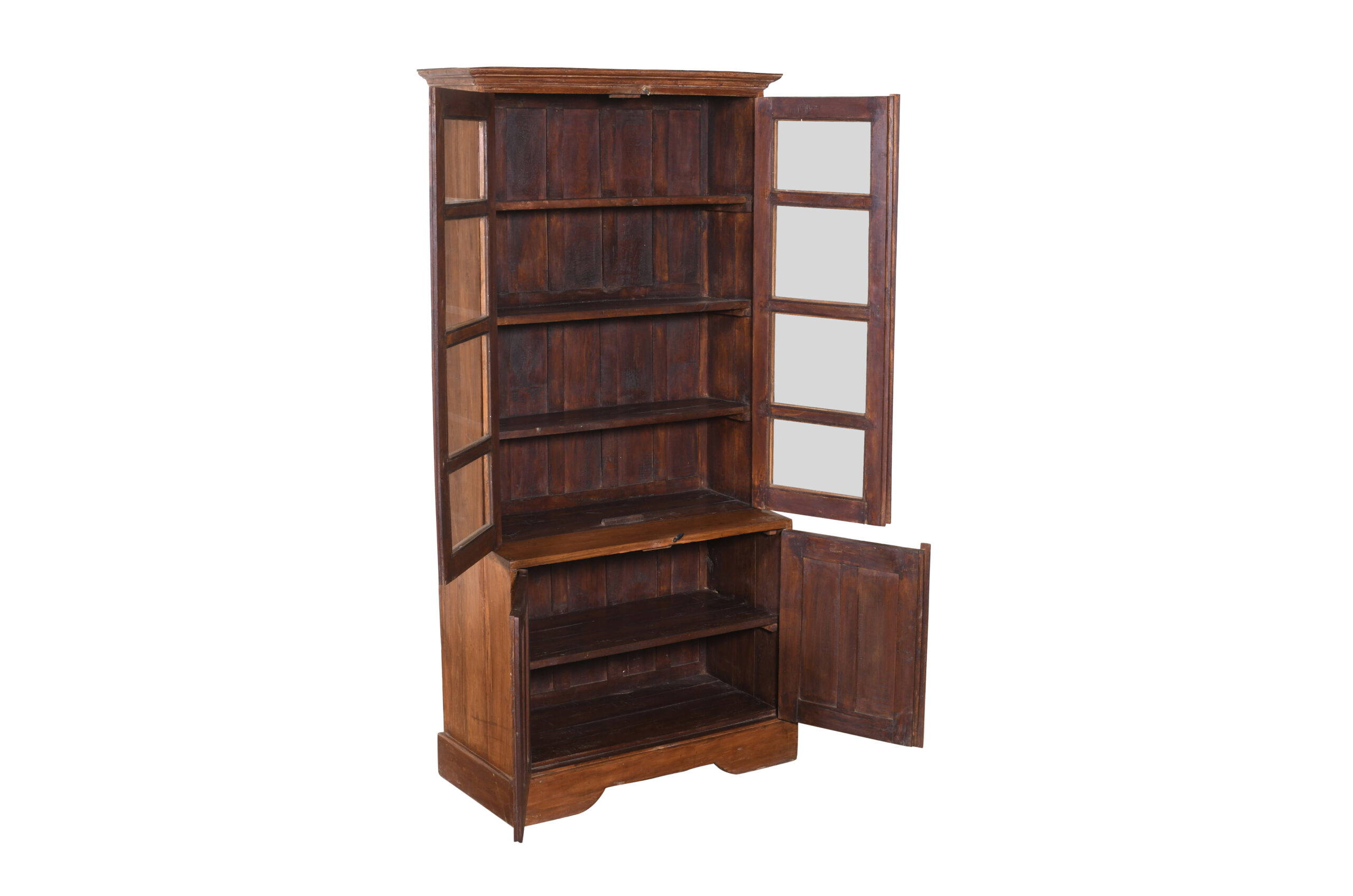 A very fine quality antique Burma teak wood Library Cabinet from Calcutta. These were widely used in the libraries and senior civil servant homes in major Indian cities during the 19th and early 20th centuries. This is a wonderful original example with 4 strong shelves and dates from between 1900-1920. A fine original example comes with a great 2 door base which is for storage too. Whilst in good original condition, this wonderful antique comes with the odd blemish that you would expect of an antique of this age. Dimensions: Length 98 x Width 46 x Height 198cm