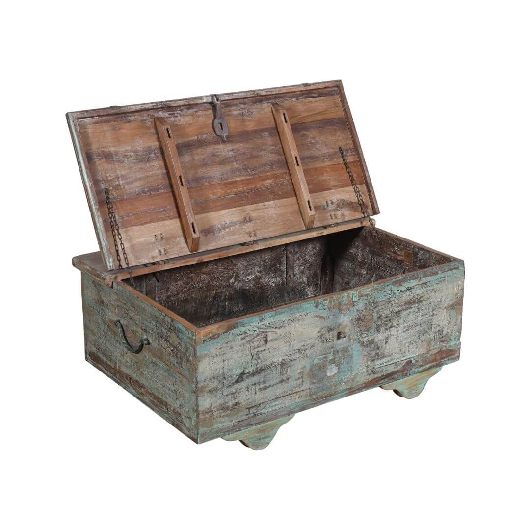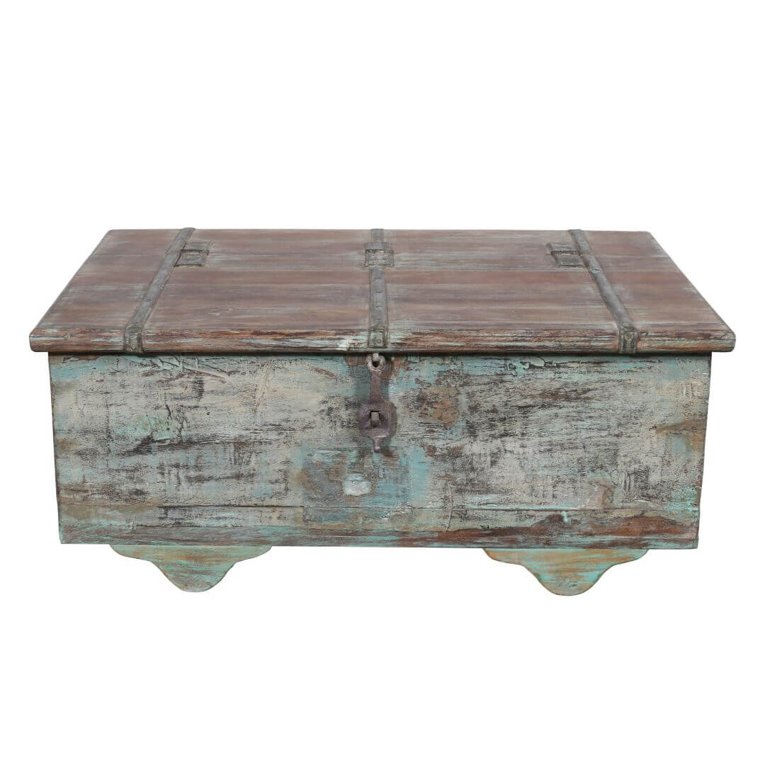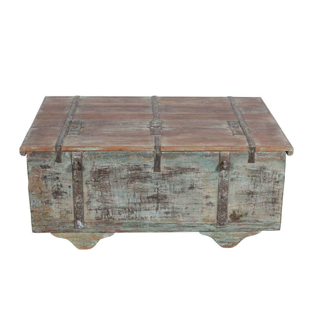 Antique Indian Teak Wood Surti Coffee Table Chest – 19th Century Blue