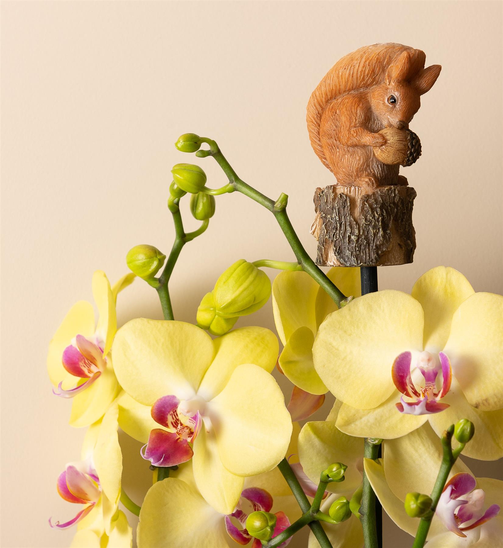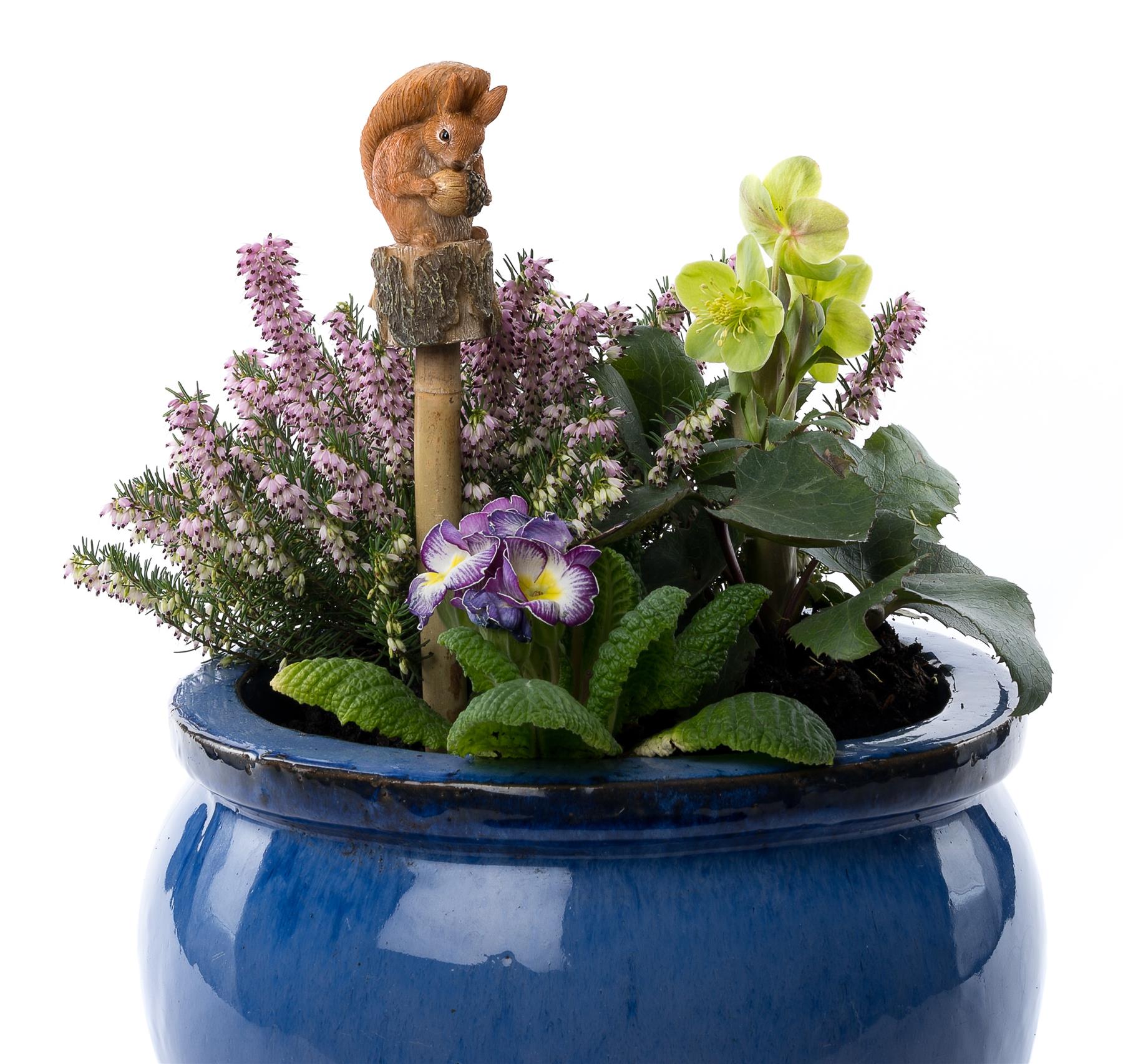 Our award-winning Colour Squirrel Nutkin Cane Companion has been custom designed and manufactured by Jardinopia Ltd, and is made from a durable poly resin and crushed stone based material. It is frost proof, UV resistant and hand-painted using lead-free products – meaning you can leave it outside all year around and the paintwork will not fade or flake in extreme temperatures and the product will not be adversely affected by frost. Squirrel Nutkin is an ideal gift for garden and Beatrix Potter lovers alike. Each Cane Companion is beautifully gift packaged using 100% recycled (and onward recyclable) craft card materials.