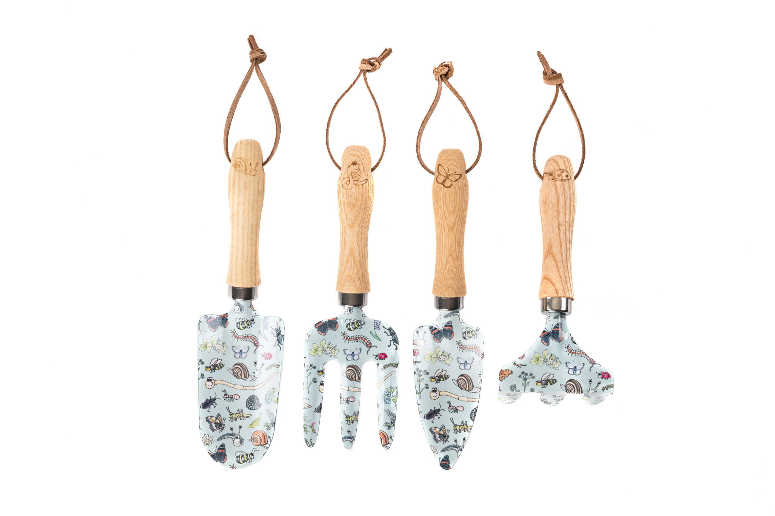 This set includes all the essential tools your child needs to get started in the garden, together with a handy tool bag. The set features a beautifully crafted high-quality trowel, rake, transplanter and fork, all made from durable metal with an attractive laser print featuring Emmas beautiful illustrations of wildlife and fitted with comfortable, easy-to-grip handles made from sustainable ash. The tools are designed to be lightweight, comfortable and easy to manoeuvre, making them perfect for childrens little hands.