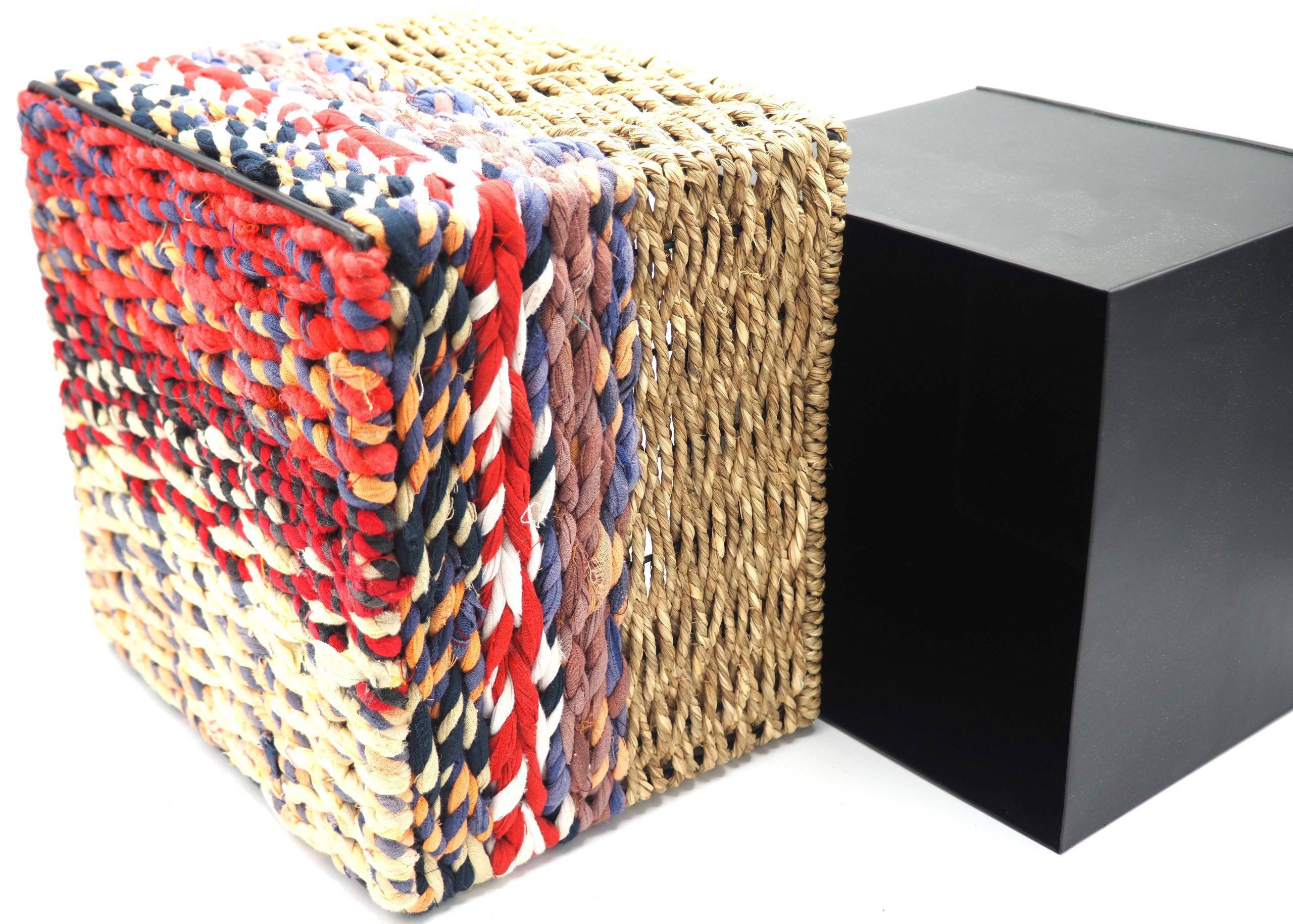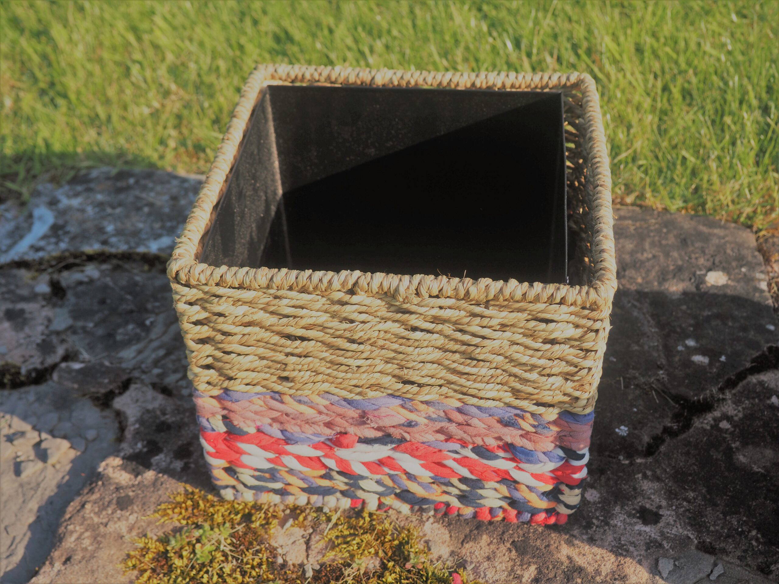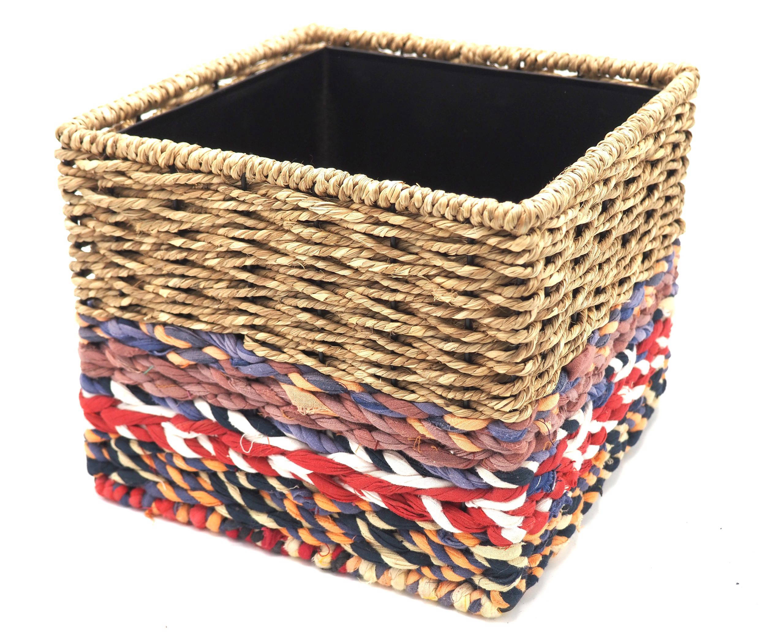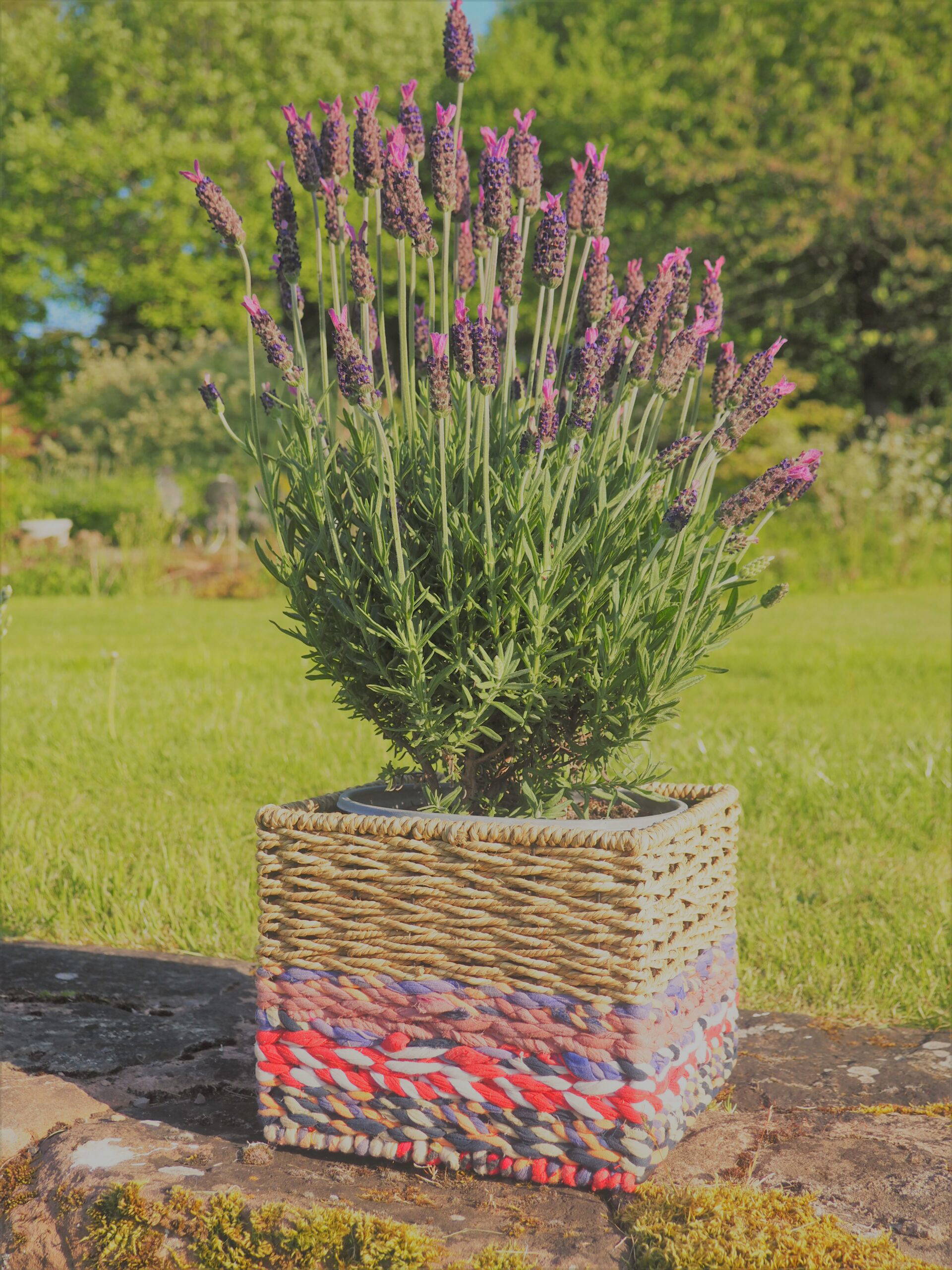 Our Fairtrade munja and sari planters have been fashioned in India using reclaimed sari fabric from factory offcuts that has been gathered and washed, and then artfully crafted together with sustainably sourced munja – making these planters a unique and environmentally friendly alternative to plastic. Munja is a tough Asiatic grass (saccharum munja) whose tenacious culms are used for ropes, twine, and baskets, with great natural water repellant abilities. It is sustainably sourced from across India. Each planter comes with a strong and watertight powder coated metal liner, so you can plant with confidence straight in to the planter, or allow pots to drain in to them when watered. Our planters can be safely used indoors or outside, and can be nested inside each other for easy storage when not in use. Each planter is unique and whilst the shape and size will be consistent, sari fabric colours will vary. Please use the photos as a guide only. Dimensions: Height 17 cm x Width 20 cm x Depth 20 cm. Please note fabric colours may vary. Images are representative only.
