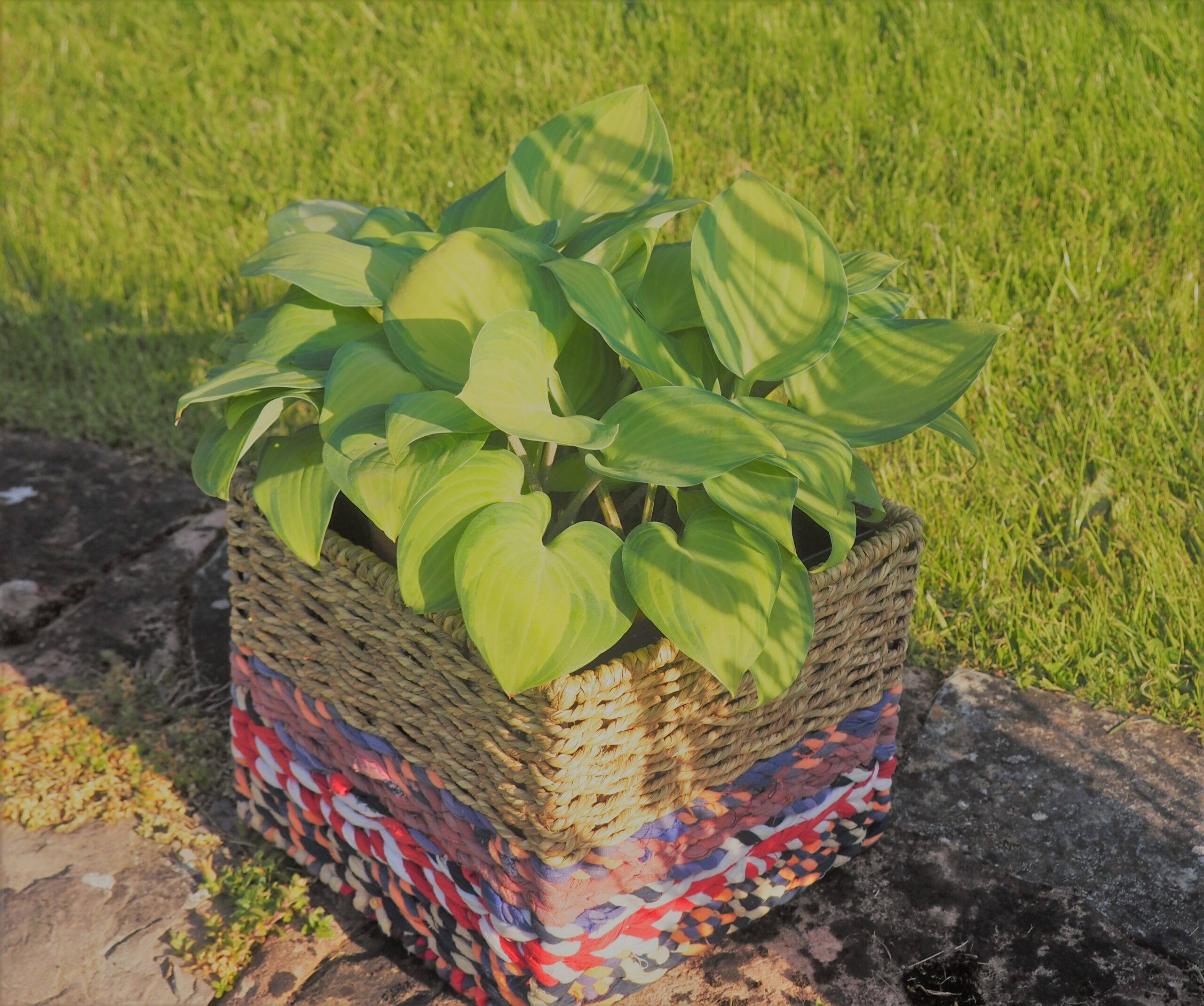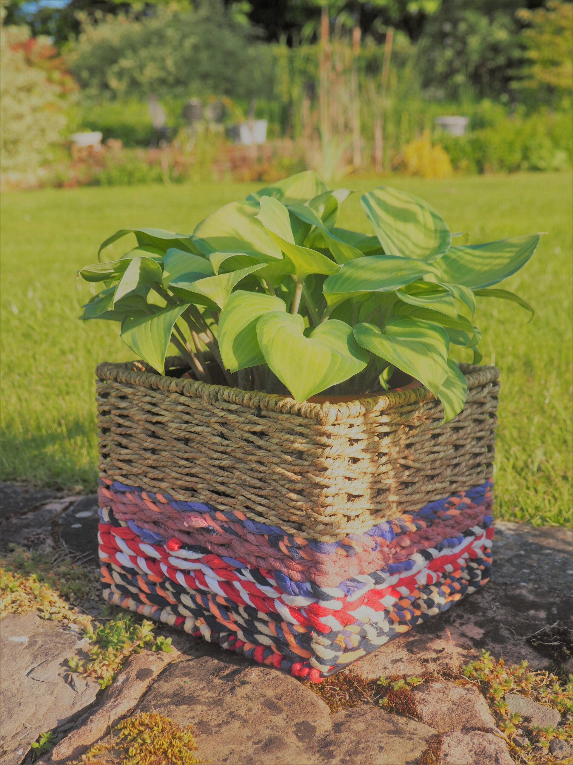 Munja And Reclaimed Fabric Eco Plant Pot Cover With Handles - Large