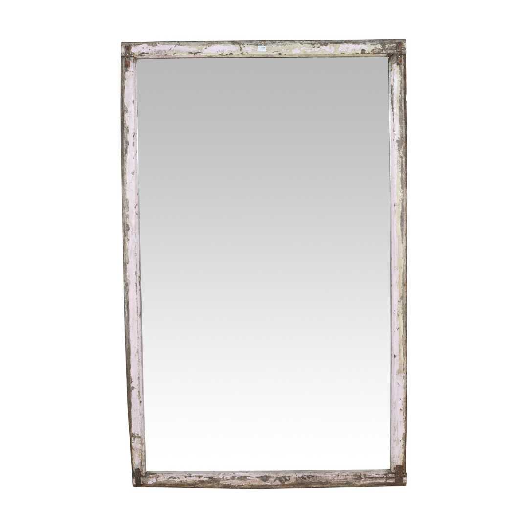 Bring a sense of history and understated elegance to your space with this Large Antique Indian Teak Window Mirror, masterfully repurposed from a salvaged 19th-century window frame. Sourced from old buildings in Rajasthan and Gujarat, this mirror features a beautifully weathered whitewashed patina with hints of pale sage and natural teak, reflecting decades of character and craftsmanship. The robust frame is hand-carved from solid teak and retains strong traces of its original paint, giving it a unique, rustic charm.
