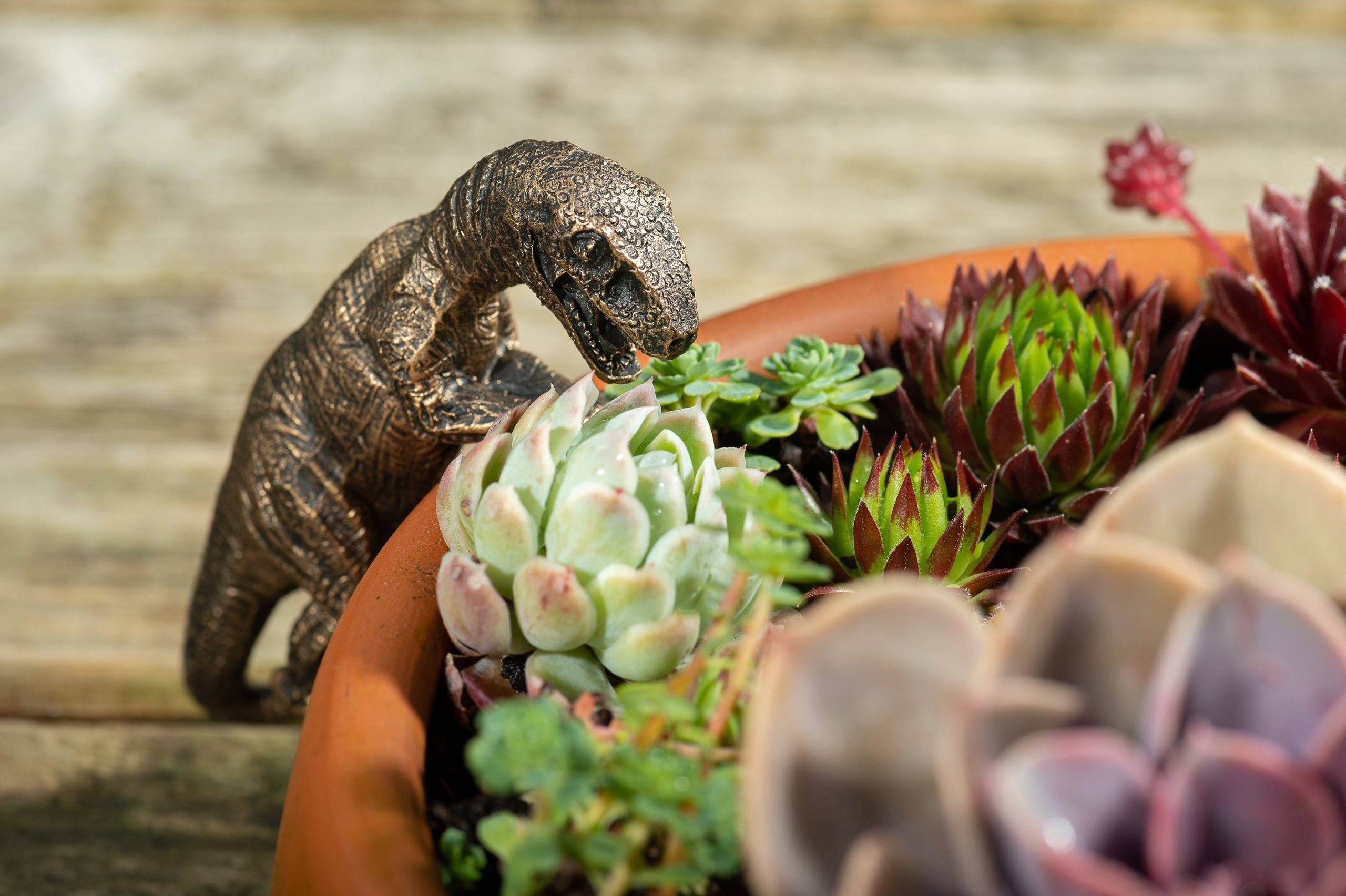 Our Velociraptor Pot Buddy pot hanger has been custom designed and manufactured by Jardinopia Ltd, and is made from a durable poly resin and crushed stone based material. It is frost proof, UVA resistant and hand-painted using lead-free products. You can leave it outside all year round and the paintwork will not fade or flake in extreme temperatures. The product will not be adversely affected by frost.? Pot Buddies are also used widely with indoor pots and planters, vases, mirrors, lamps, fruit bowls or indeed anything with a ‘lip’ that he can hang on to! Add a bit of fun to your living room and a real talking point for your friends.